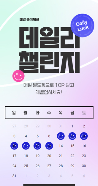 레벨은 매일 매일 출석체크와 룰렛을 돌려서 얻을 수 있는 포인트가 쌓이면 자동으로 올라갑니다.